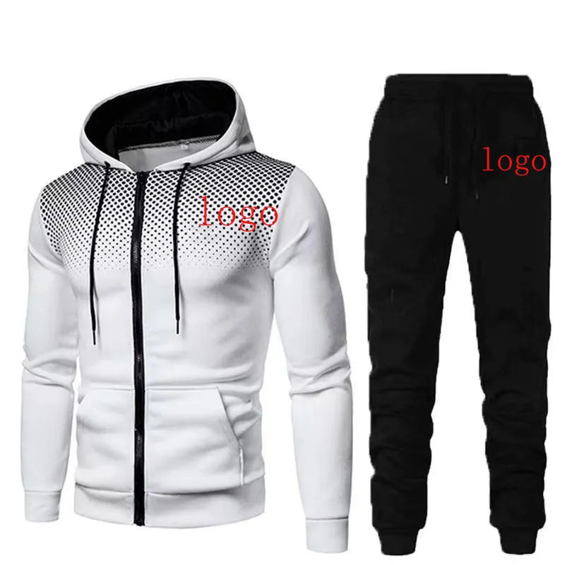 ชุดกีฬากางเกงวอร์มมีฮู้ดแบบมีซิปสำหรับผู้ชายชุดวอร์มพร้อมกางเกงออกแบบโลโก้ได้ตามต้องการ