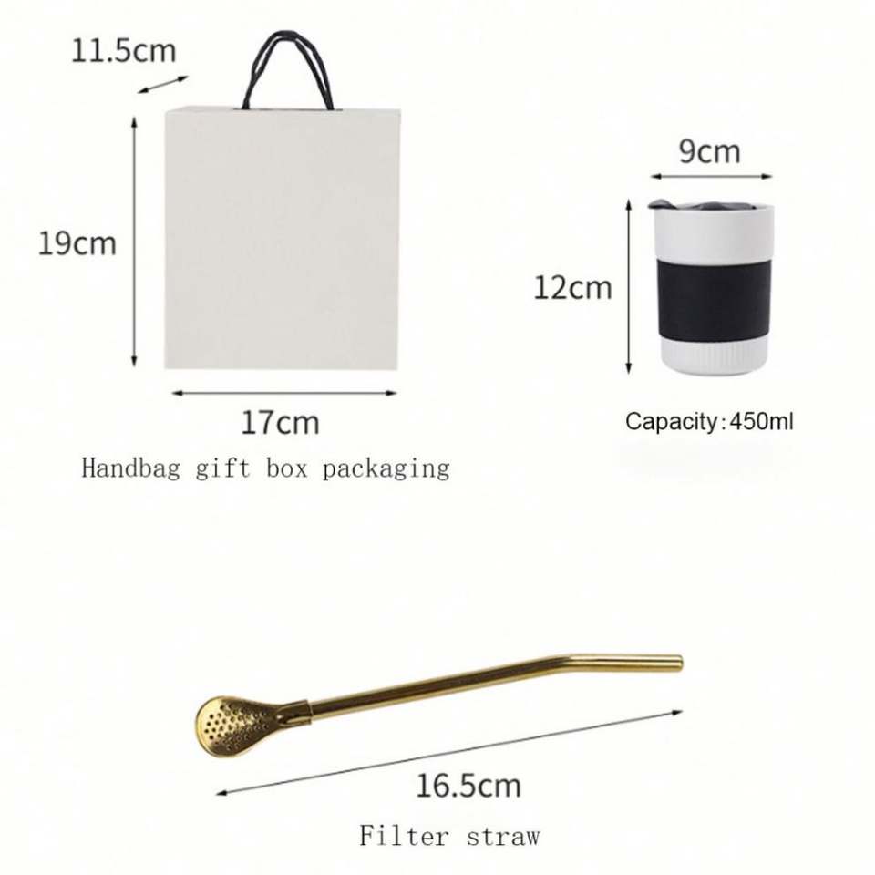 ชุดกล่องของขวัญธุรกิจเทศกาลพร้อมโลโก้สั่งทำ แก้วกาแฟเซรามิคสองชั้น ขนาด 450 มล. พร้อมปลอกซิลิโคนและฝาเลื่อน