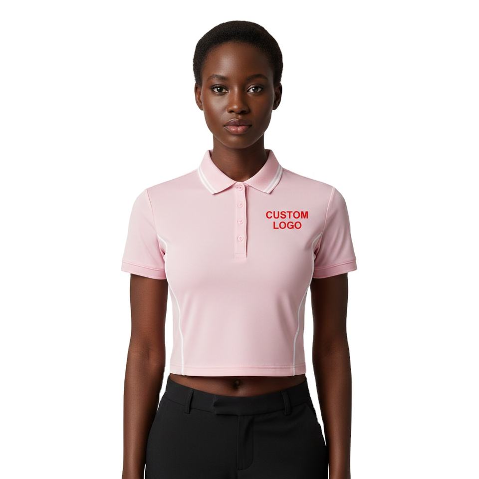 เสื้อโปโลผู้หญิงคุณภาพสูง ปักโลโก้ได้ตามต้องการ แบบลำลอง สีขาว แต่งขอบ ทรงครอป รุ่นปี 2026