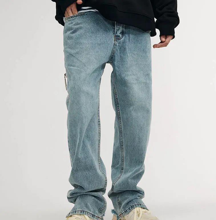 กางเกงยีนส์ทรงตรงลำลองสไตล์สตรีทแวร์ผู้ชาย รุ่นใหม่ คุณภาพสูง ออกแบบโลโก้เองได้ ทรงหลวมขนาดใหญ่
