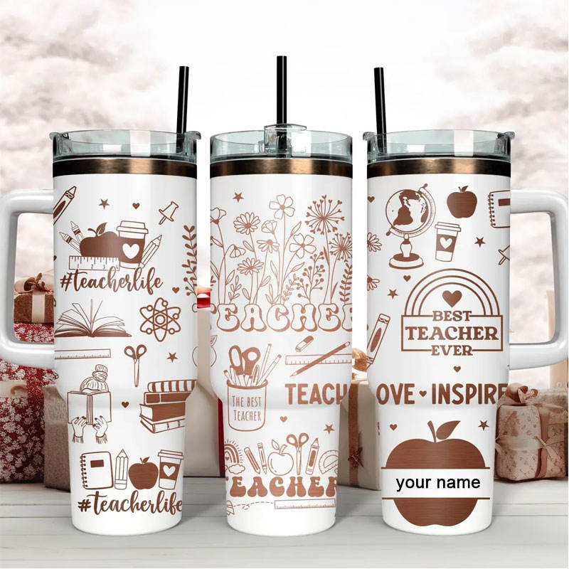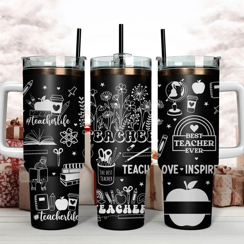 แก้วน้ำเก็บอุณหภูมิขนาดใหญ่ 40 ออนซ์ สลักโลโก้ด้วยเลเซอร์ สำหรับครู ของขวัญวันครู