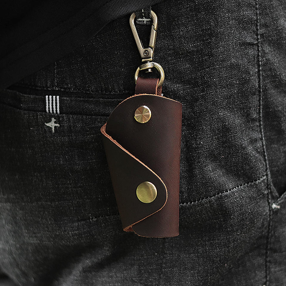 ที่ใส่กุญแจหนังโลโก้แบบกำหนดเองกระเป๋าสตางค์ผู้ชายห่วงพวงกุญแจรถกระเป๋ารถ FOB ออแกไนเซอร์ของขวัญแฮนด์เมดลายม้าบ้า