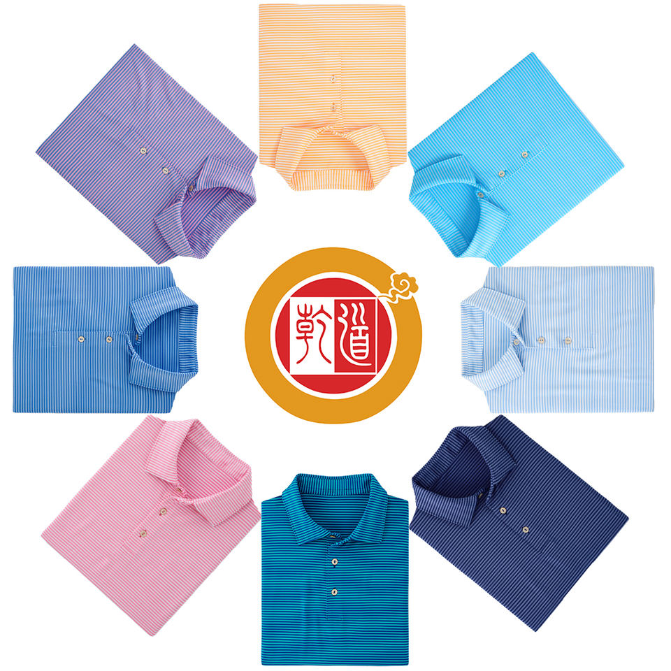 เสื้อโปโลลายทางของผู้ชายเสื้อผ้ากอล์ฟผ้าสแปนเด็กซ์โพลีเอสเตอร์พิมพ์ซับลิเมชันโลโก้หรูหรา