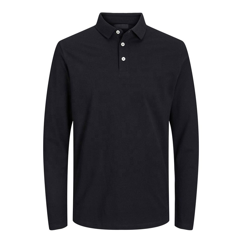 เสื้อโปโลแขนเต็มสำหรับผู้ชายเสื้อ100% โปโลผ้าคอตตอนคอมบ์ออกแบบโลโก้ได้ตามต้องการ