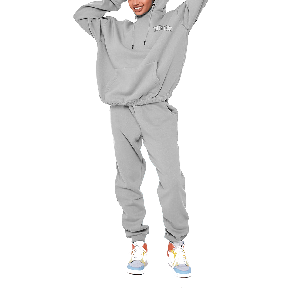 ชุดวอร์มผ้าฟลีซแบบมีฮู้ดสำหรับผู้ชายและผู้หญิง โลโก้สั่งทำได้ ชุดกีฬาผ้าฝ้าย 100% แบบเรียบ ชุดจ็อกเกอร์ กางเกงวอร์มขายาว เสื้อฮู้ด