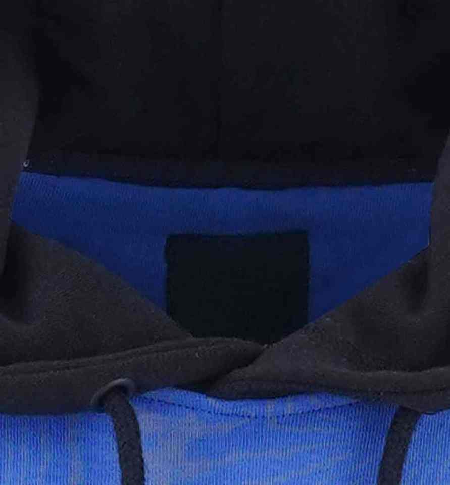 เสื้อฮู้ดดี้ผู้ชายสีน้ำเงินและสีดำ พิมพ์โลโก้ตามสั่ง คุณภาพสูง ทรงโอเวอร์ไซส์ สไตล์สตรีทแวร์ ผ้าคอตตอนหนานุ่มแบบวินเทจ