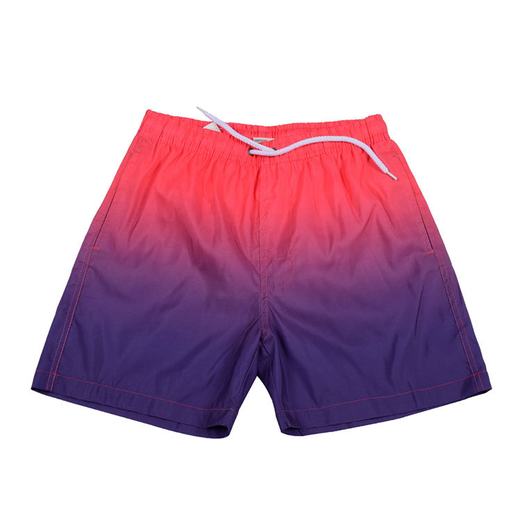 กางเกงว่ายน้ำผู้ชายลายไล่สีพร้อมโลโก้แบบกำหนดเอง กางเกงชายหาดแห้งเร็ว กันน้ำ มีกระเป๋า กางเกงฮาวาย กางเกงขาสั้นฤดูร้อนสำหรับผู้ชาย