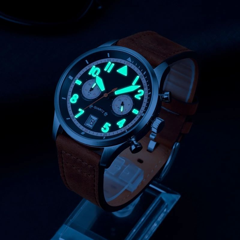 Feature:Day/Date, DIVER, Water Resistant, waterproof, Luminous Hands, Shock Resistant, Date, Luminous, chronograph, Week Display, Small three needle, Stop Watch