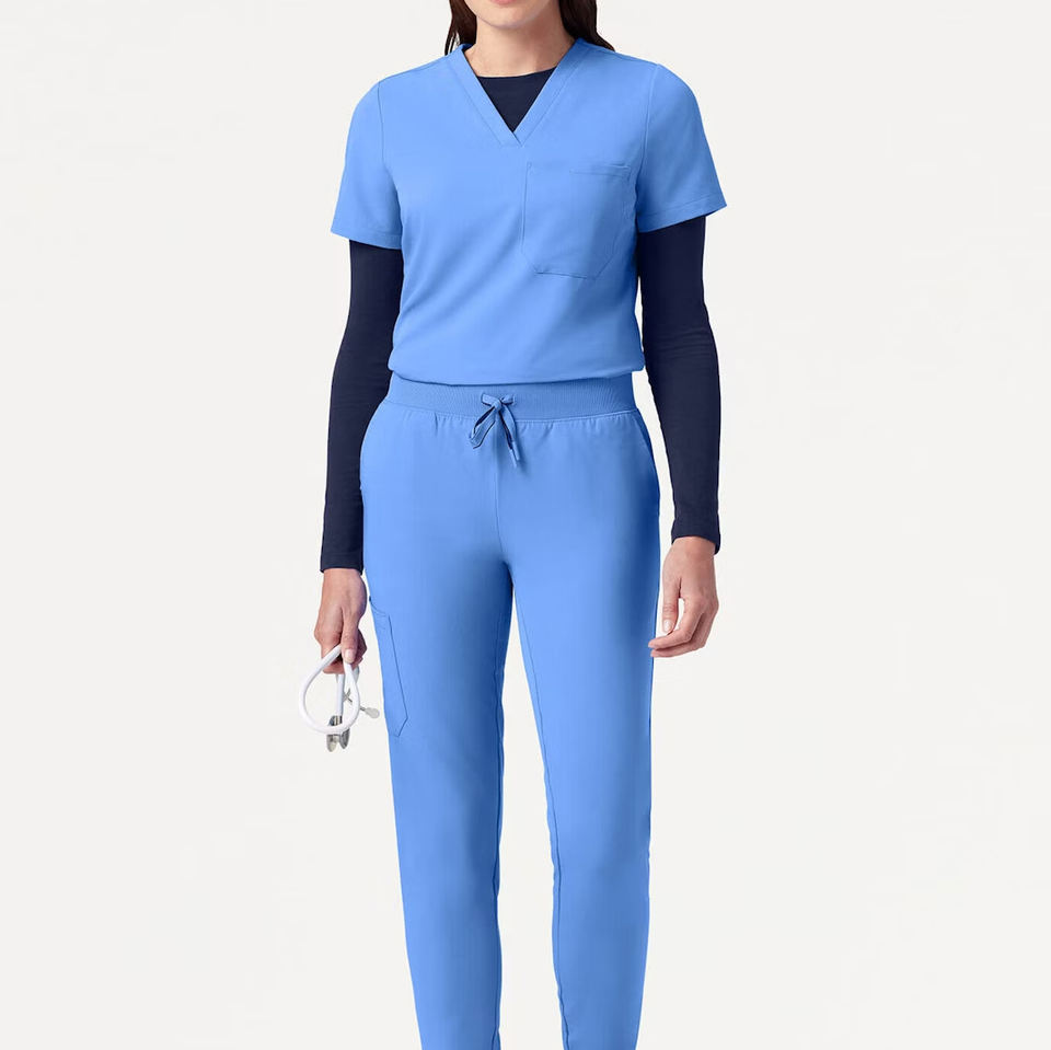 ชุดยูนิฟอร์มพยาบาลสำหรับสตรีเสื้อยูนิฟอร์มพยาบาลแบบขัดตัวโลโก้ออกแบบได้ตามต้องการ