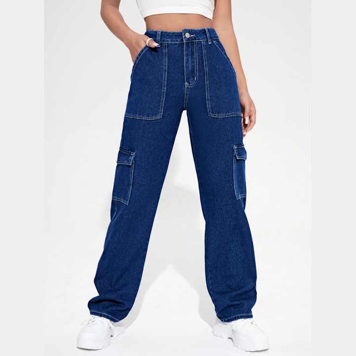 กางเกงยีนส์เอวสูงสำหรับผู้หญิง,กางเกงยีนส์ขายาวตรงทรงตรงกว้างมีกระเป๋าสั่งโลโก้ได้ตามต้องการ