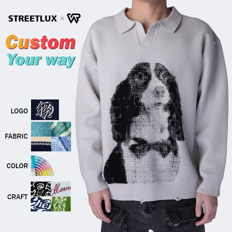 เสื้อสเวตเตอร์ถักลายการ์ตูนผ้าแจ็คการ์ดแขนยาวสำหรับผู้ชายและผู้หญิงโลโก้ตามสั่ง
