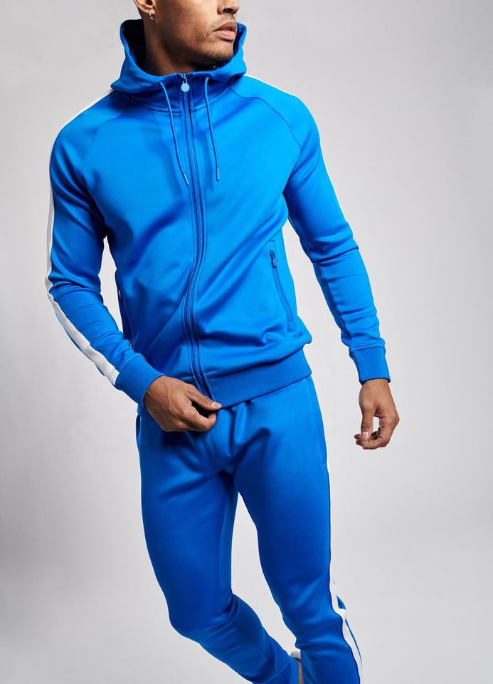 ชุดวอร์ม2ชิ้นสำหรับผู้ชายชุดวอร์ม2ชิ้นสำหรับยิมฤดูหนาวชุดวอร์มสีฟ้าล้วนออกแบบโลโก้ได้ตามต้องการ