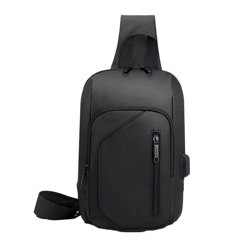 กระเป๋าคาดอกผู้ชายแบบพกพา แฟชั่น เรียบง่าย พร้อมโลโก้สั่งทำได้ ขายส่ง ความจุเยอะ เหมาะสำหรับออกกำลังกาย เดินทาง มีช่อง USB