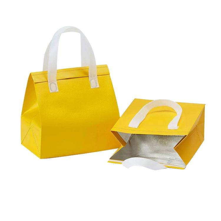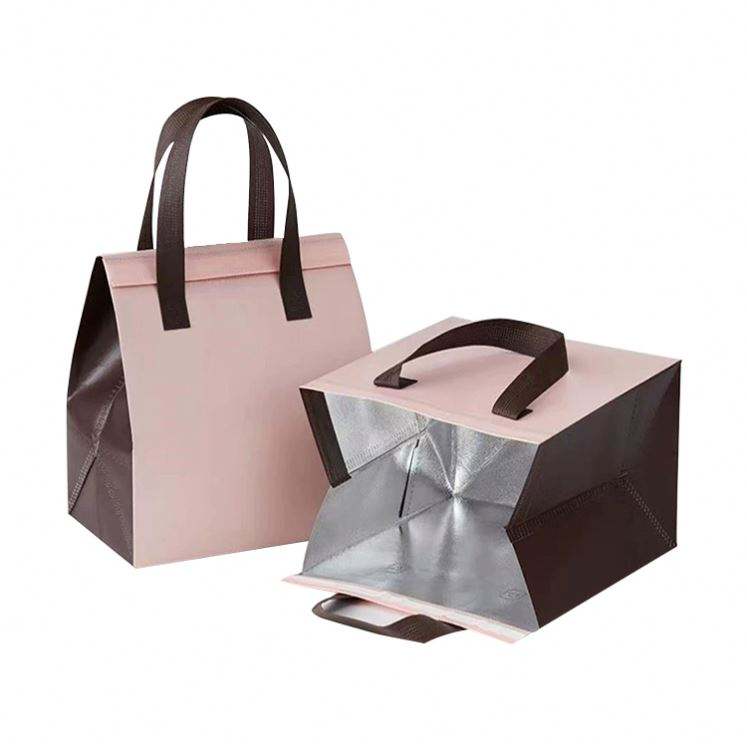 กระเป๋าเก็บความเย็นแบบพกพา วัสดุผ้าไม่ทอเคลือบฟอยล์สีเงิน สำหรับใส่กลับบ้าน กันน้ำ เก็บอุณหภูมิได้ดี ขนาดเล็ก พร้อมโลโก้สั่งทำพิเศษ