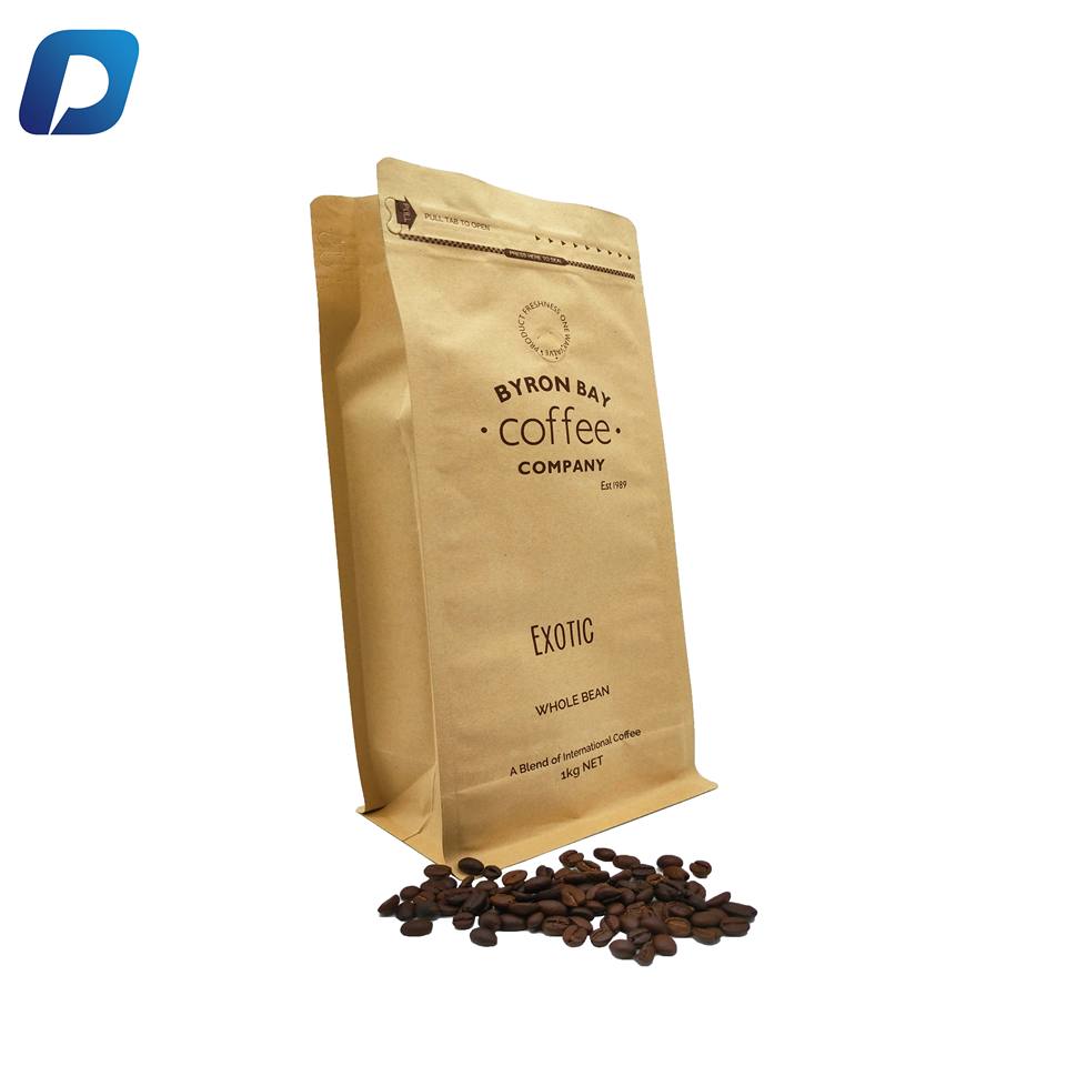 โลโก้ที่กำหนดเองพรีเมี่ยมที่มีคุณภาพกระดาษคราฟท์บล็อกด้านล่างกระเป๋าเมล็ดกาแฟถุงผง