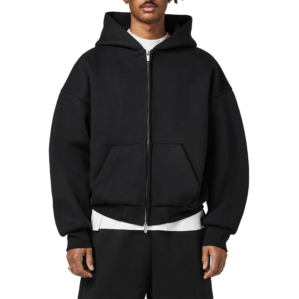 เสื้อฮู้ดดี้พิมพ์โลโก้ตามสั่ง ผ้าฝ้ายสีพื้น สวมใส่สบาย ทรงครอป มีกระเป๋า ซิปหน้า ทรงบ็อกซี่ สำหรับผู้ชาย