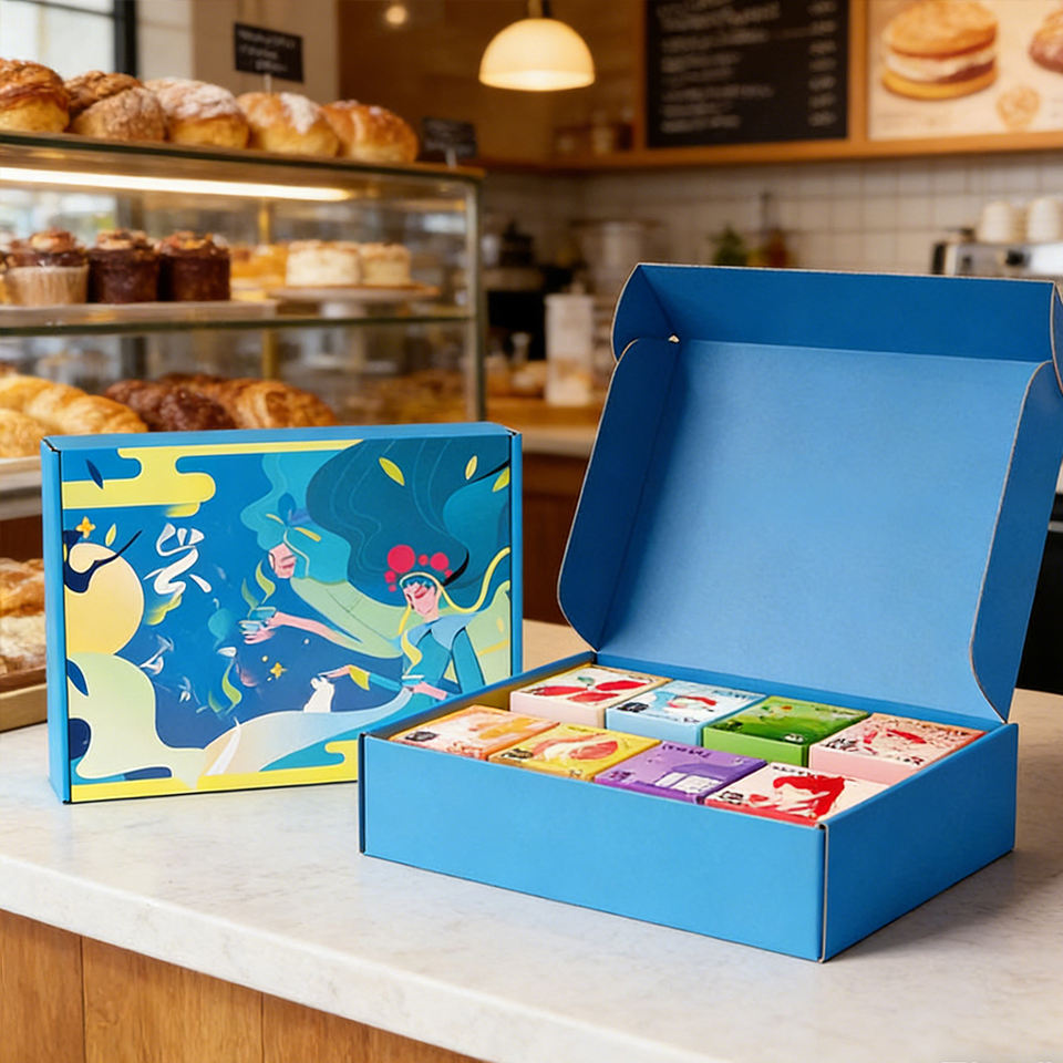 กล่องขนมพิมพ์โลโก้ตามสั่ง กล่องขนมคุกกี้เนื้อกรอบ กล่องกระดาษแข็งสีขาวย่อยสลายได้ กล่องบรรจุภัณฑ์เบเกอรี่ ขนมเนย ชีส ขนมอบ