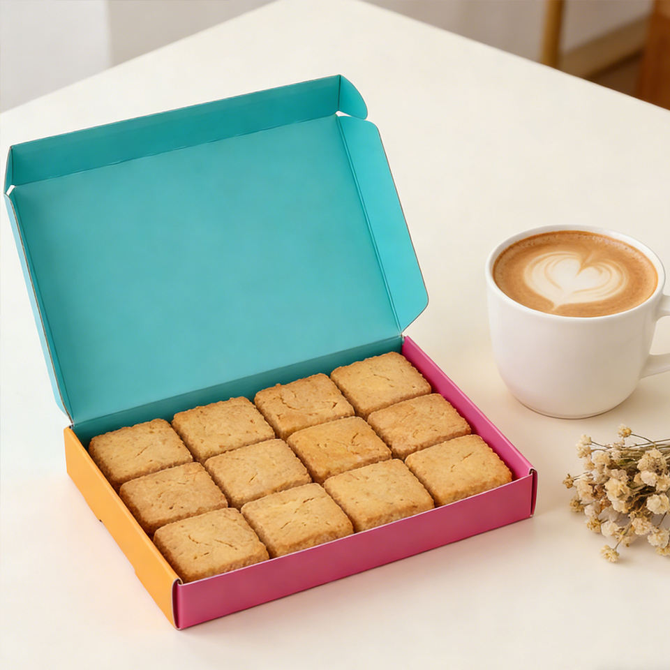 กล่องขนมพิมพ์โลโก้ตามสั่ง เป็นมิตรกับสิ่งแวดล้อม กล่องคุกกี้เนื้อเนียนสีขาว กล่องกระดาษแข็งสำหรับบรรจุภัณฑ์ขนมเนย ชีส ขนมอบ