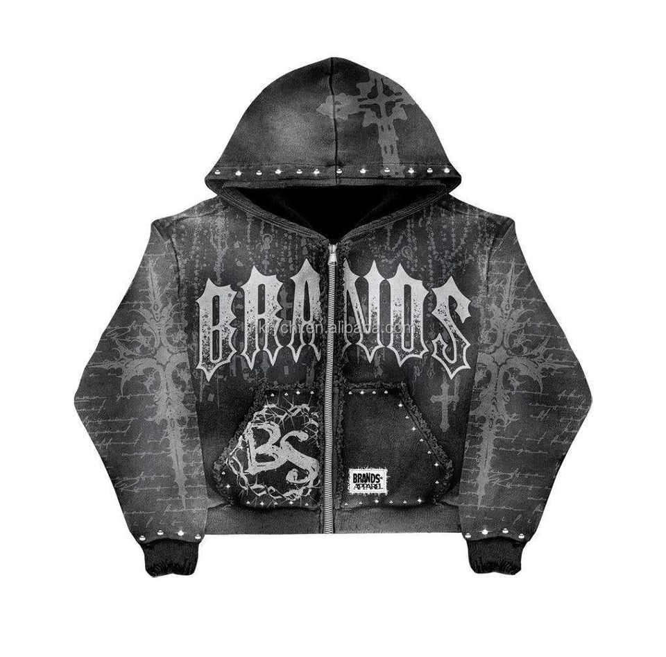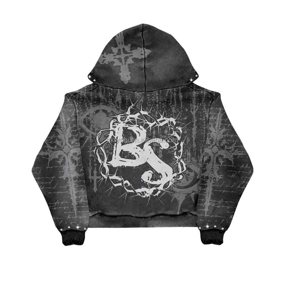 เสื้อฮู้ดแบบสวมหัวของผู้ชายเสื้อมีฮู้ดแบบสวมหัวพิมพ์ลาย Y2k โลโก้ตามสั่ง