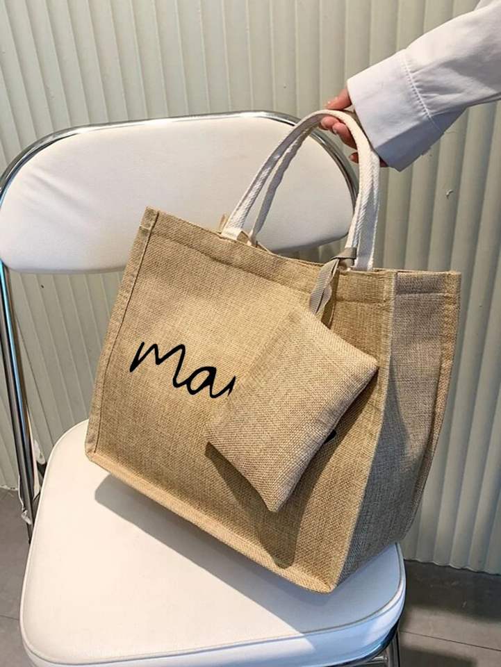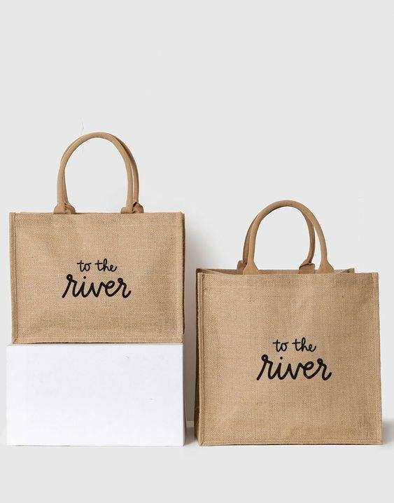 กระเป๋าผ้ากระสอบเคลือบลายเรโทรพร้อมโลโก้สั่งทำ กระเป๋าผ้ากระสอบธรรมชาติรักษ์โลก กระเป๋าช้อปปิ้งผ้าปอกระเจาแบบใช้ซ้ำได้