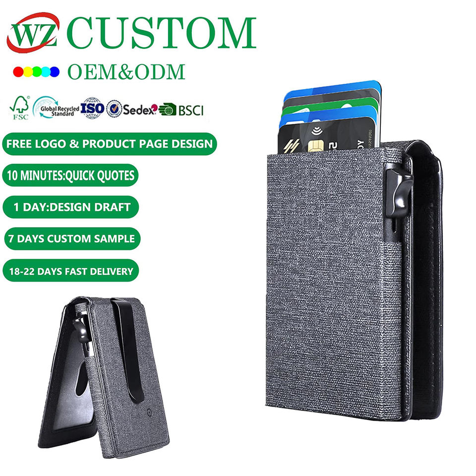 กระเป๋าสตางค์แบบบางพับได้พร้อมโลโก้สั่งทำ ใส่บัตรเครดิต บัตรธุรกิจ บัตรประชาชน วัสดุหนังและอะลูมิเนียม พร้อมระบบป้องกัน RFID สำหรับผู้ชาย