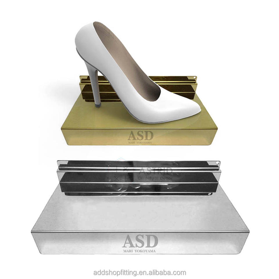 Custom logo Stainless Steel Gold Slat Wall Display Slatwall Shoes Shelf for Store