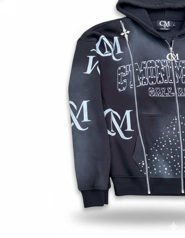 เสื้อฮู้ดดี้ผู้ชายสไตล์วินเทจ แบรนด์สตรีทแวร์ โลโก้สั่งทำ ทรงหลวม ไหล่ตก ผ้าฝ้าย 100% ล้างสีแบบ Stone Acid Wash ประดับคริสตัล หลายสี