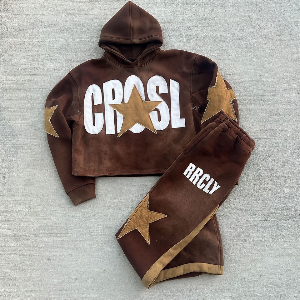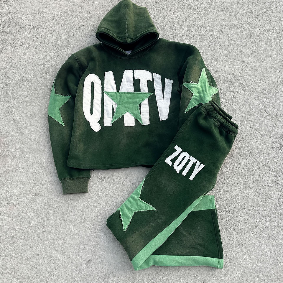 เสื้อฮู้ดกันหนาวมีฮู้ดสำหรับผู้ชายกางเกงวอร์มและชุดเสื้อฮู้ดกันหนาวมีฮู้ดปักลายแนวสตรีทโลโก้ตามสั่ง