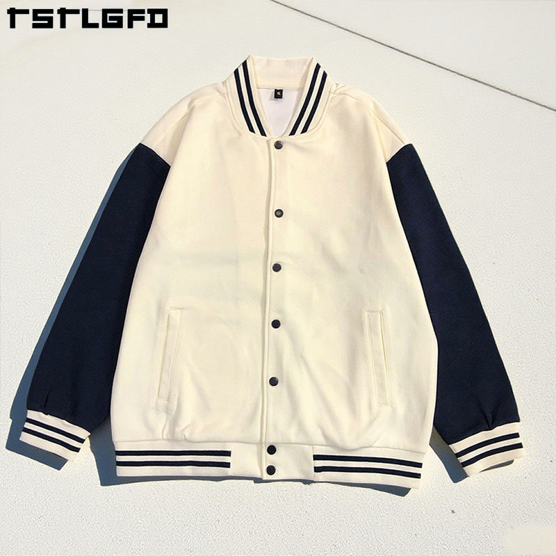 แจ็กเก็ตเบสบอลแจ็กเก็ตผ้าฟลีซของผู้ชายแบบย้อนยุคมีกระดุม350ก. สำหรับฤดูหนาวโลโก้ตามสั่ง