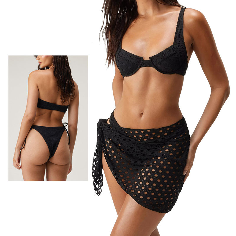 ชุดว่ายน้ำกระโปรง2024พิมพ์ลายชุดบิกินี่3ชิ้นพิมพ์ฉลากติดโลโก้ได้ตามต้องการ