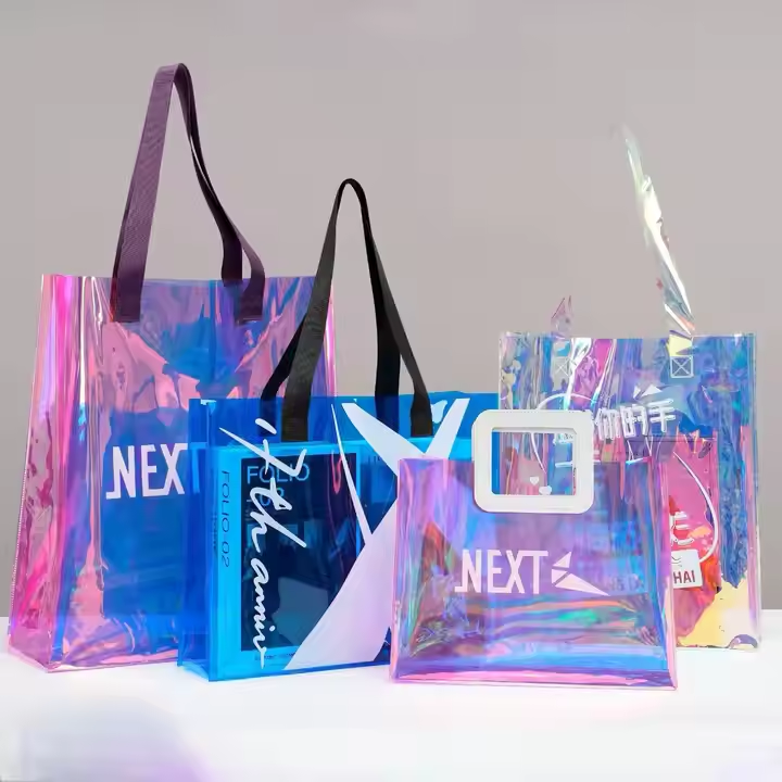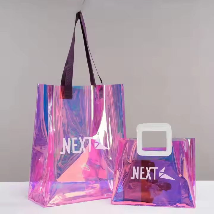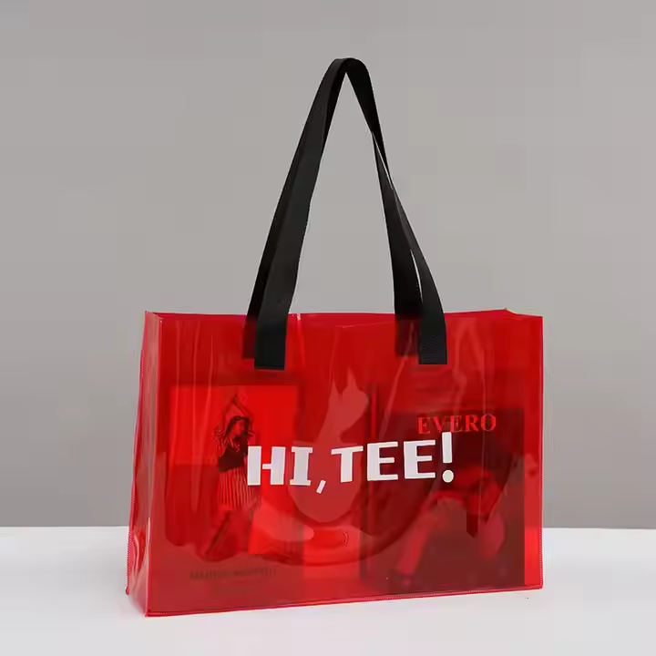 กระเป๋าช็อปปิ้งทำจาก PVC ของขวัญเดินทางชายหาดทำจากพลาสติกสีชมพูเยลลี่ลูกกวาดสีใสโลโก้ออกแบบได้ตามต้องการ