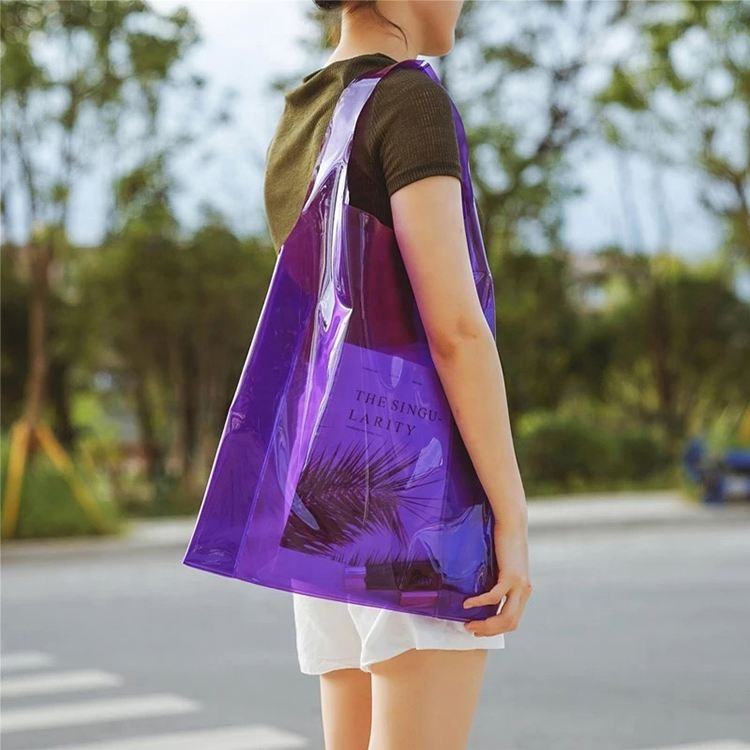 ถุงผ้าพีวีซีใสมีหูจับกระเป๋าช้อปปิ้งกันน้ำโลโก้ออกแบบได้ตามที่ต้องการ