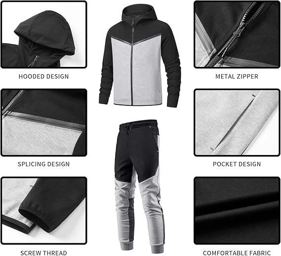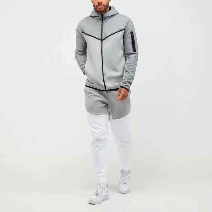 ชุดวอร์มผ้าฝ้าย100% ไซส์พิเศษน้ำหนักเบาระบายอากาศมีซิปชุดวอร์มสีเทากางเกงแฟชั่นใหม่โลโก้ตามสั่ง