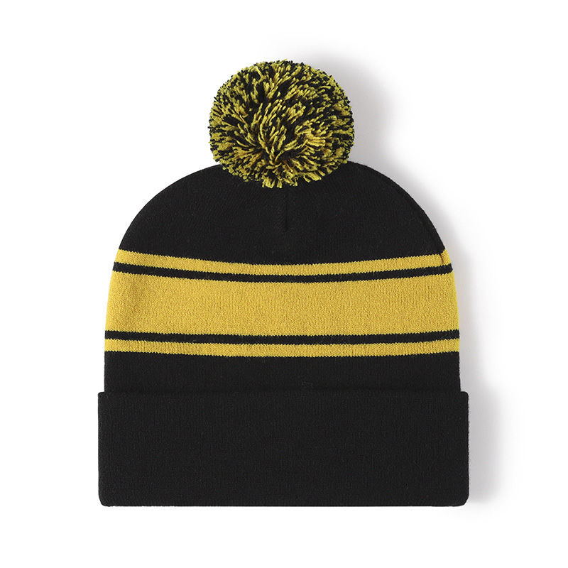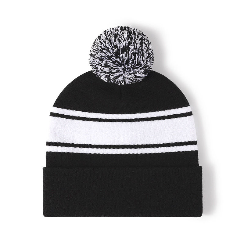 หมวกบีนนี่แบบถักหมวกบีนนี่ปอมปอมหมวกถักแบบลำลองสำหรับฤดูหนาวโลโก้ออกแบบได้ตามต้องการ