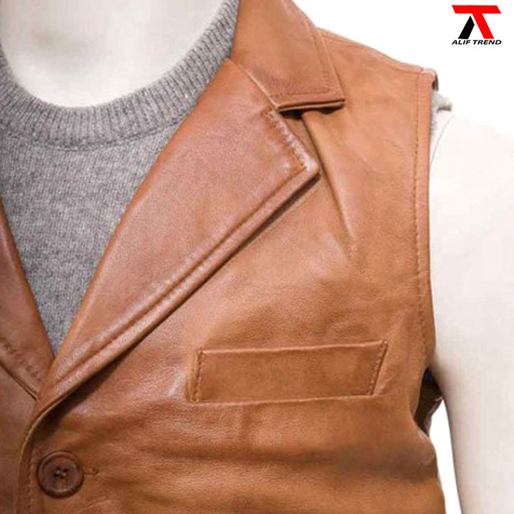 Custom logo Winter Vest Genuine Leather Vest Plus Size Men's Sheepskin Vest Wholesale