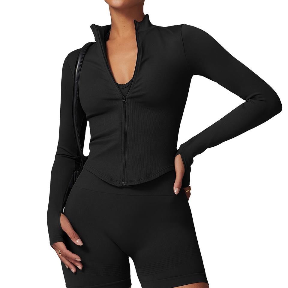 ชุดเสื้อแจ็คเก็ตมีซิปสำหรับผู้หญิงเสื้อออกกำลังกายโยคะฟิตเนส2026โลโก้ได้ตามต้องการ