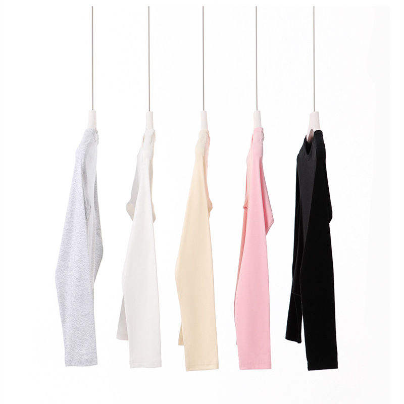 เสื้อยืดคอกลมแขนยาวสำหรับผู้หญิงเสื้อยืดลำลองสีล้วนพิมพ์โลโก้ได้ตามต้องการ