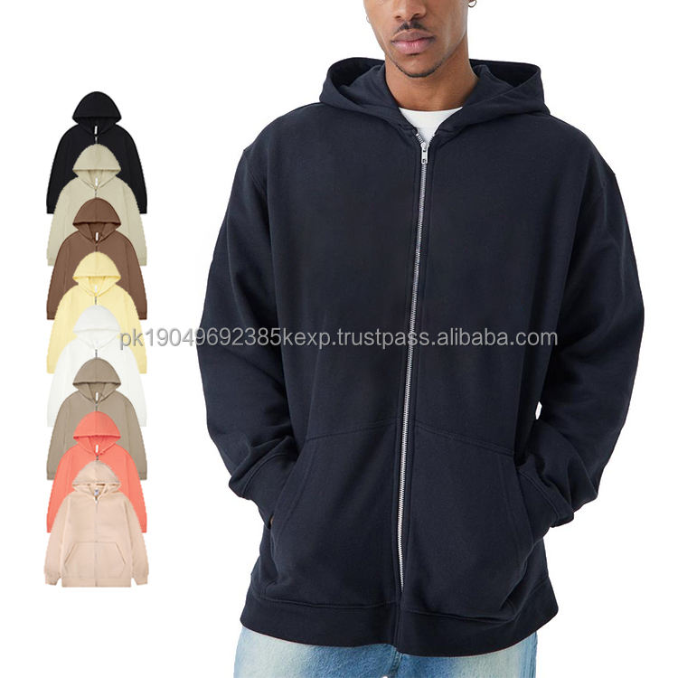 เสื้อฮู้ดซิปพิมพ์โลโก้ตามสั่ง 500 กรัม สำหรับผู้ชาย แบบไม่มีเชือก มีซิป ปักลายตามสั่ง เสื้อฮู้ดเนื้อหนา สำหรับ OEM ODM