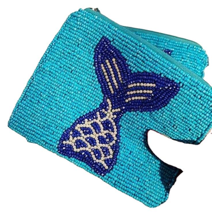 กระเป๋าใส่เหรียญปักลูกปัดโลโก้ตามสั่ง สำหรับของขวัญส่งเสริมการขาย กระเป๋าใส่เหรียญปักลูกปัด งานฝีมือประณีต ทำโดย MD HANDICRAFTS