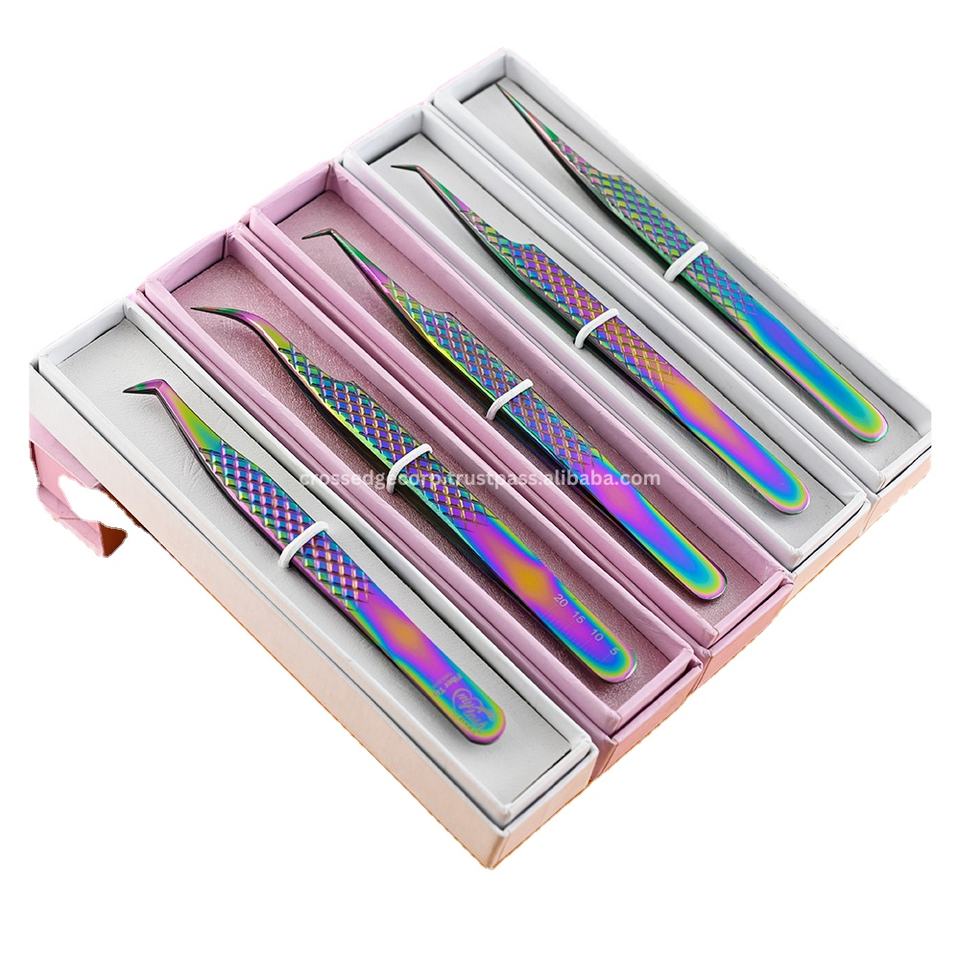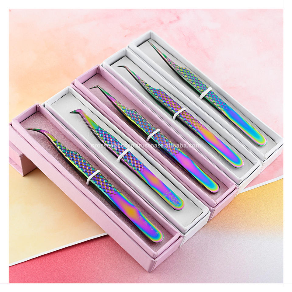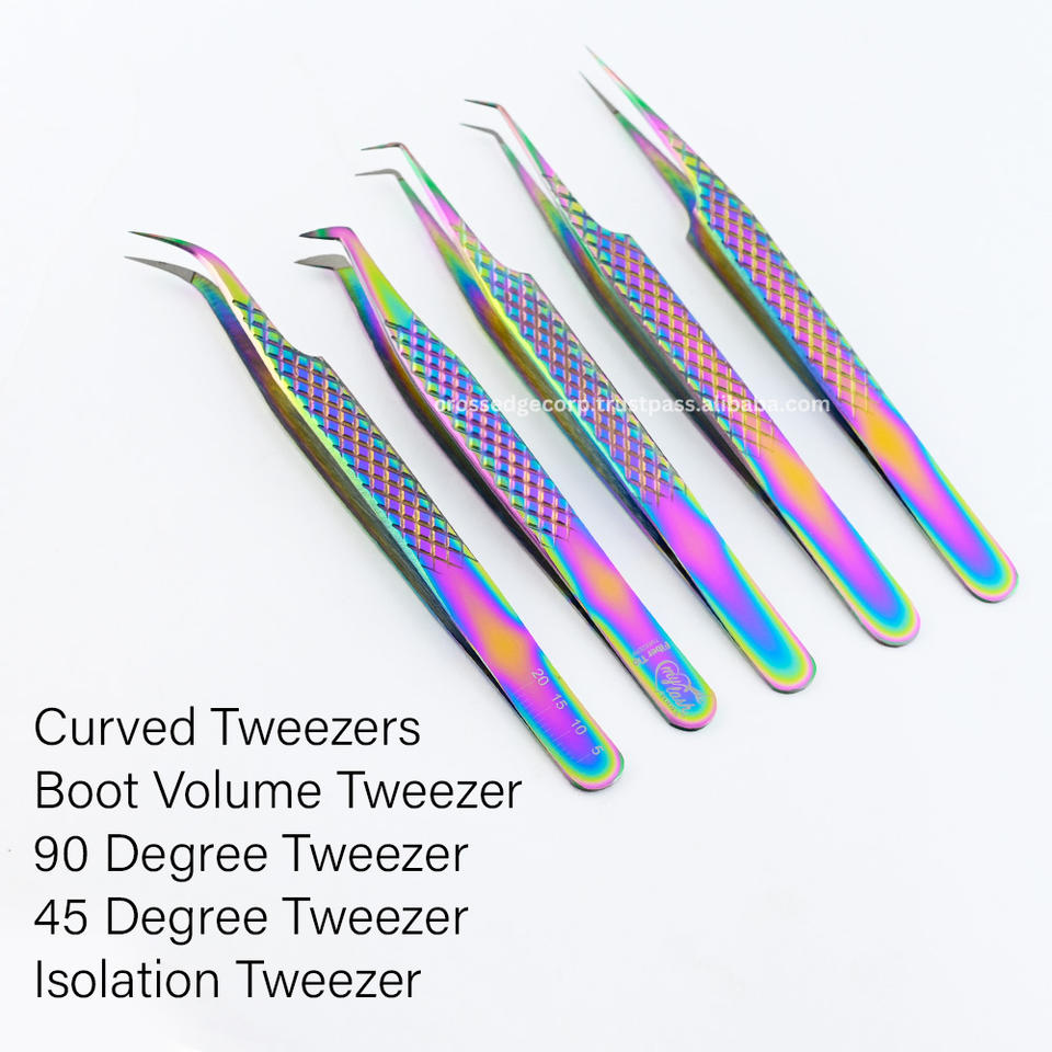 โลโก้ที่กําหนดเองโค้งปริมาณไฟเบอร์เคล็ดลับต่อขนตาแหนบ 45 75 90 องศานาโนจับและขนตาแยกแหนบแหนบเครื่องมือ