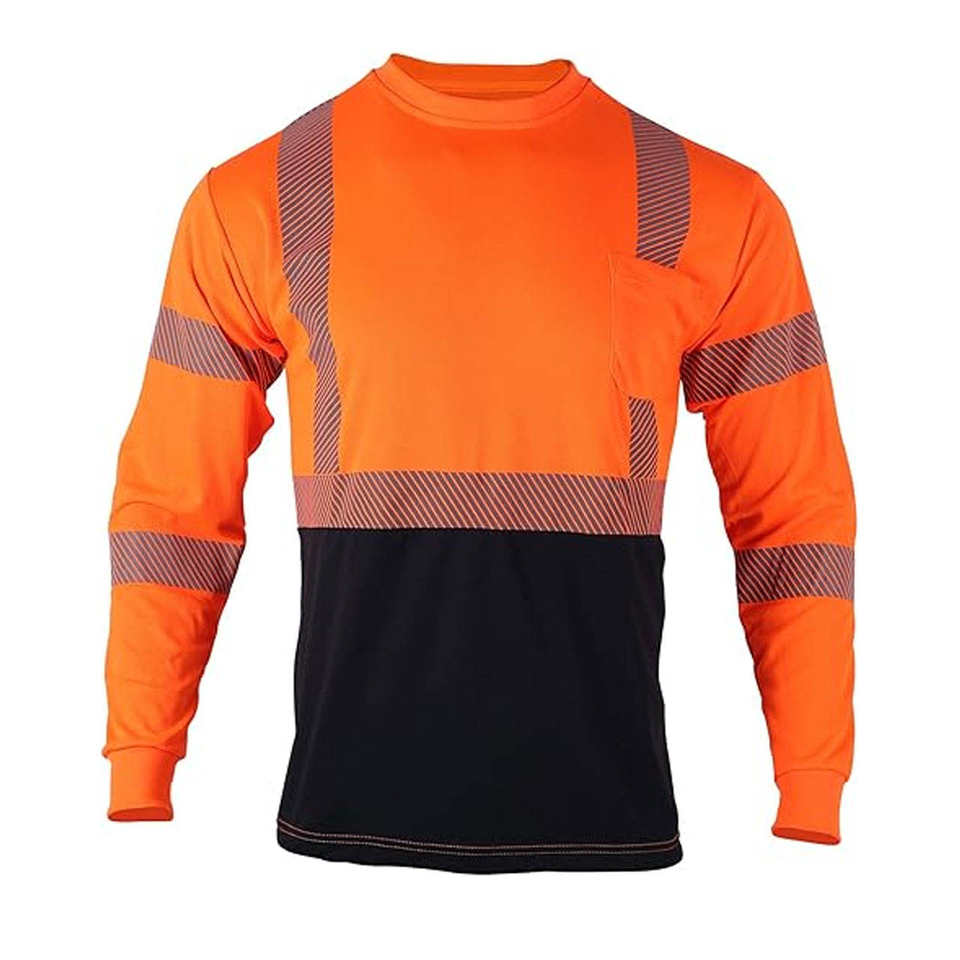 เสื้อยืดแขนยาวสำหรับทำงานผู้ชาย พิมพ์โลโก้ได้ ผลิตจากผ้าผสมคอตตอนและโพลีเอสเตอร์ เหมาะสำหรับงานก่อสร้างและโรงงาน