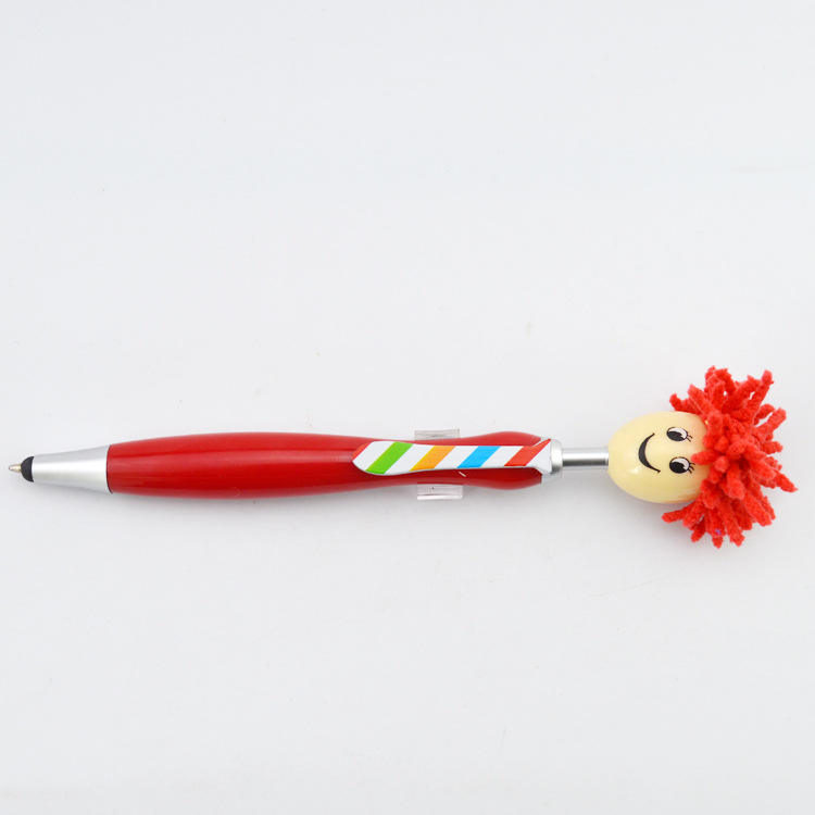 ปากกาลูกลื่นหัวตุ๊กตาการ์ตูนอเนกประสงค์ปากกาสำหรับเด็กไม้ถูพื้นหัวมีขนปากกาของขวัญน่ารักโลโก้กำหนดเอง