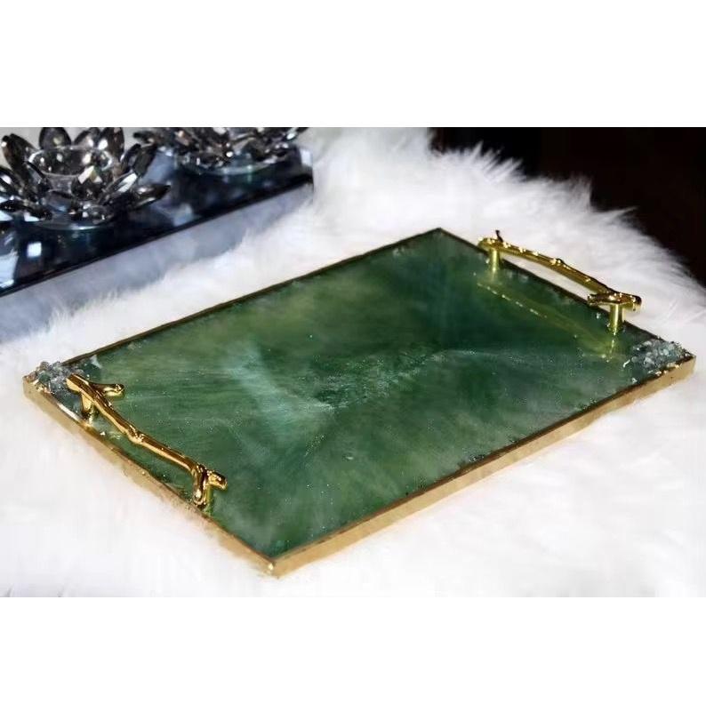 ถาดเสิร์ฟอีพ็อกซี่เรซิน Geode พร้อมด้ามจับสีทองดีไซน์เป็นของขวัญสำหรับเครื่องประดับกาแฟหรือเป็นของขวัญ