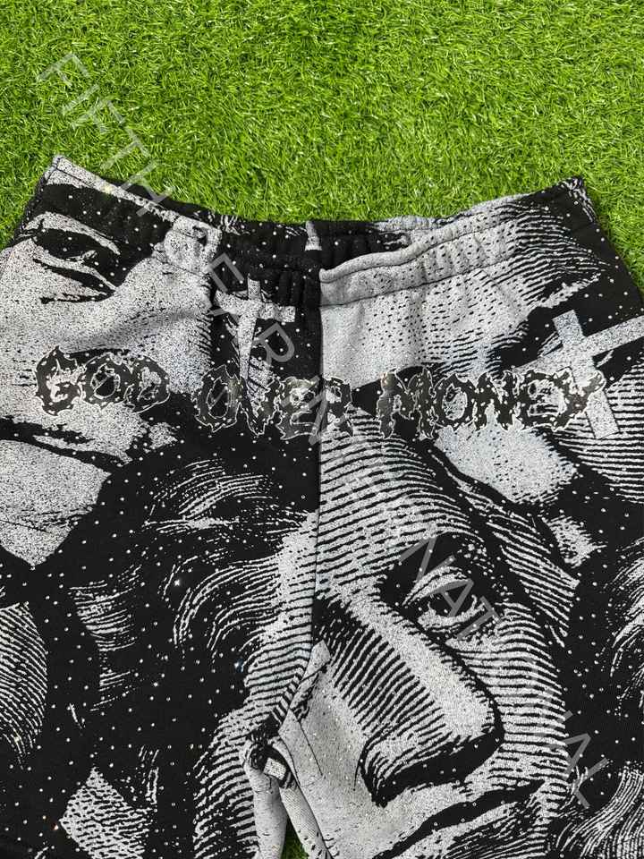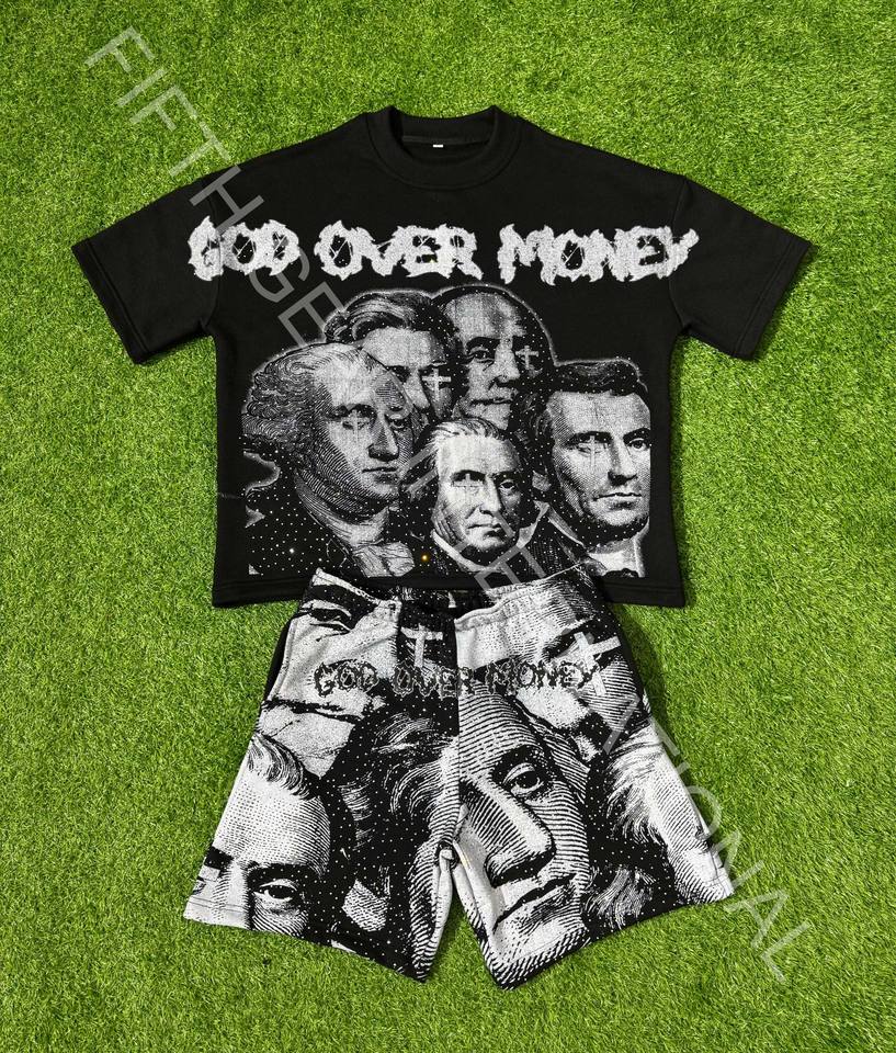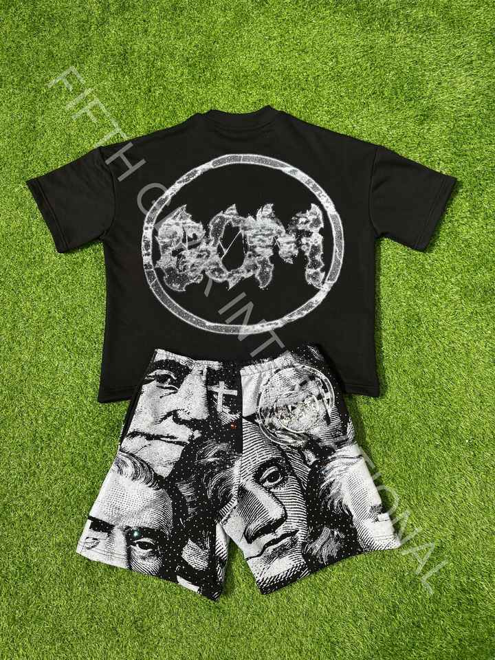 เสื้อยืด2ชิ้นทำจากผ้าฝ้ายเฟรนช์เทอร์รี่100% ทรงบ็อกซี่ฟิตพร้อมพิมพ์สกรีนกราฟิกและพลอยเทียม