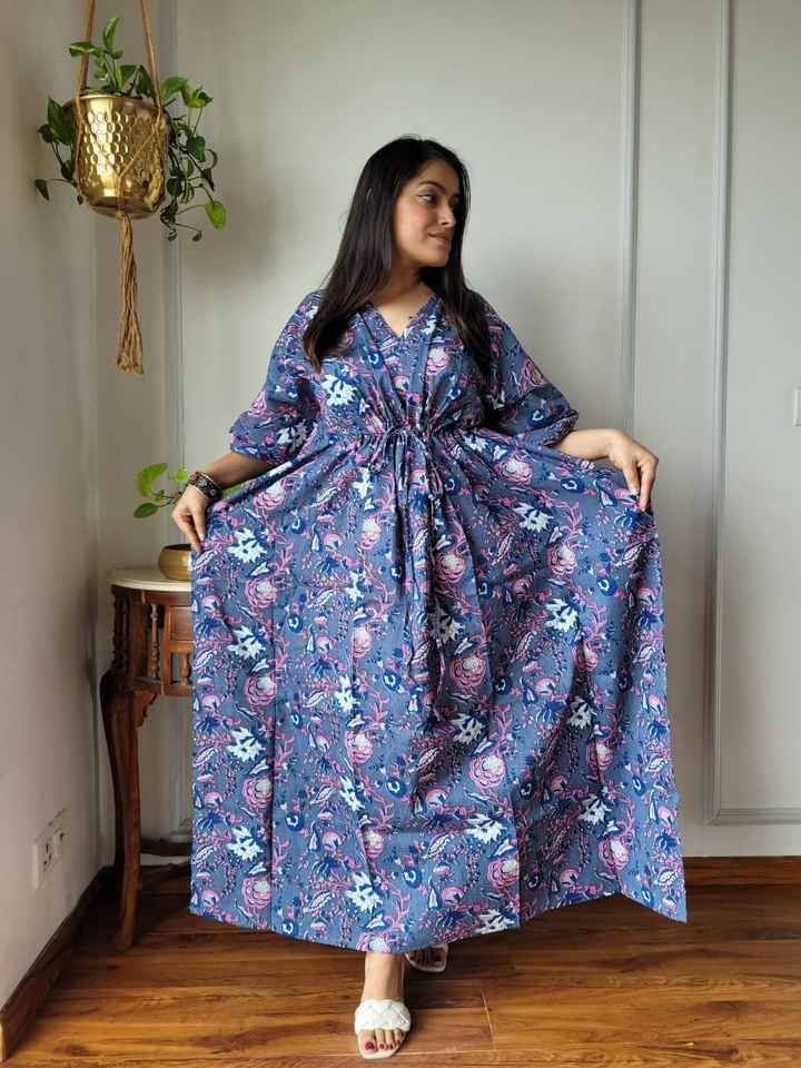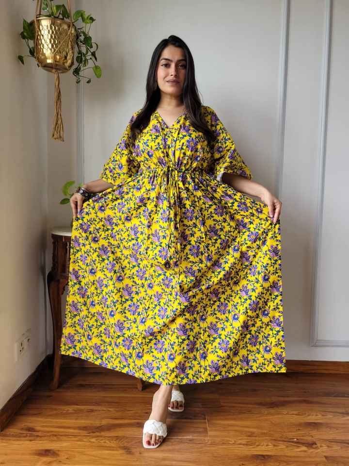 Custom made Ethnic Cotton Kaftan Dress for Women-V-Neck with Drawstring Waist suitable for boutique clients and garment reseller