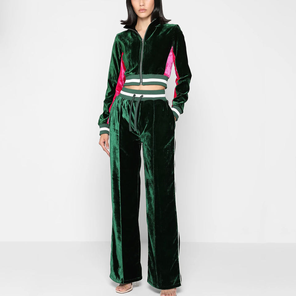 ชุดฮู้ดดี้ผู้หญิงแบบสั่งทำพิเศษสำหรับฤดูใบไม้ร่วง ชุดเซ็ตเสื้อครอปมีซิปและกระเป๋า แจ็คเก็ตกำมะหยี่ ชุดวอร์มกำมะหยี่ ชุดเซ็ตสองชิ้นสำหรับผู้หญิง