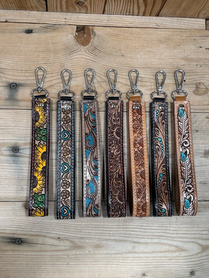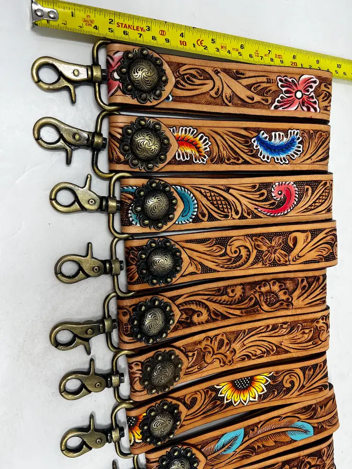 พวงกุญแจหนังสลักด้วยมือทำเองและทำด้วยมือในอินเดียลายนูนทนทานเป็นมิตรกับสิ่งแวดล้อม