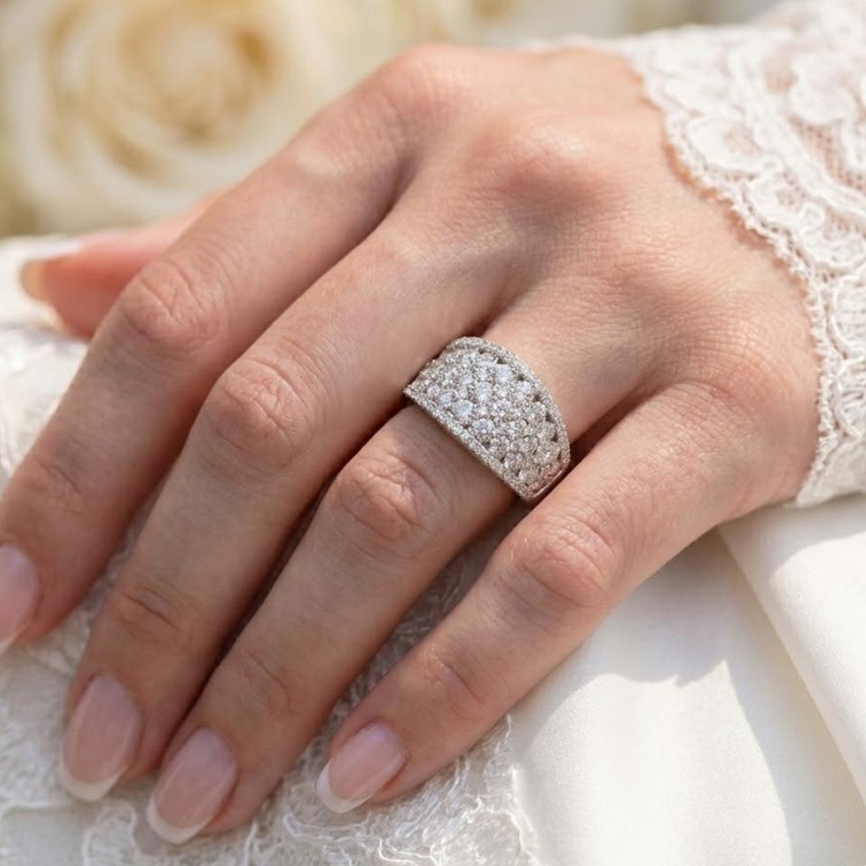 เครื่องประดับสั่งทำพิเศษ ดีไซน์โรแมนติก คุณภาพสูง แหวนทองคำขาวแท้ 18k ประดับเพชรแท้ทรงกลม วงหนา สำหรับผู้หญิง