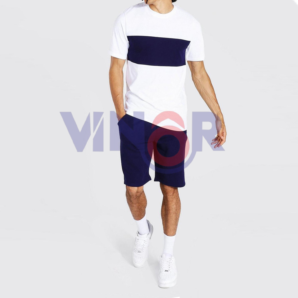 ชุดเสื้อผ้าสองชิ้นสำหรับผู้ชายเสื้อแขนสั้นแบบแห้งเร็วพร้อมกางเกงขาสั้นระบายอากาศได้