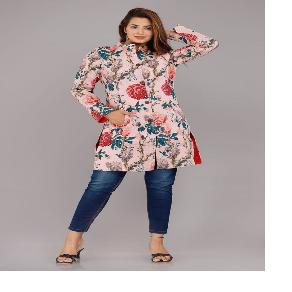 เสื้อแจ็กเก็ตฤดูหนาวลายควิลท์ยาวแบบกลับด้านได้เลือกขนาดได้สีเบจ